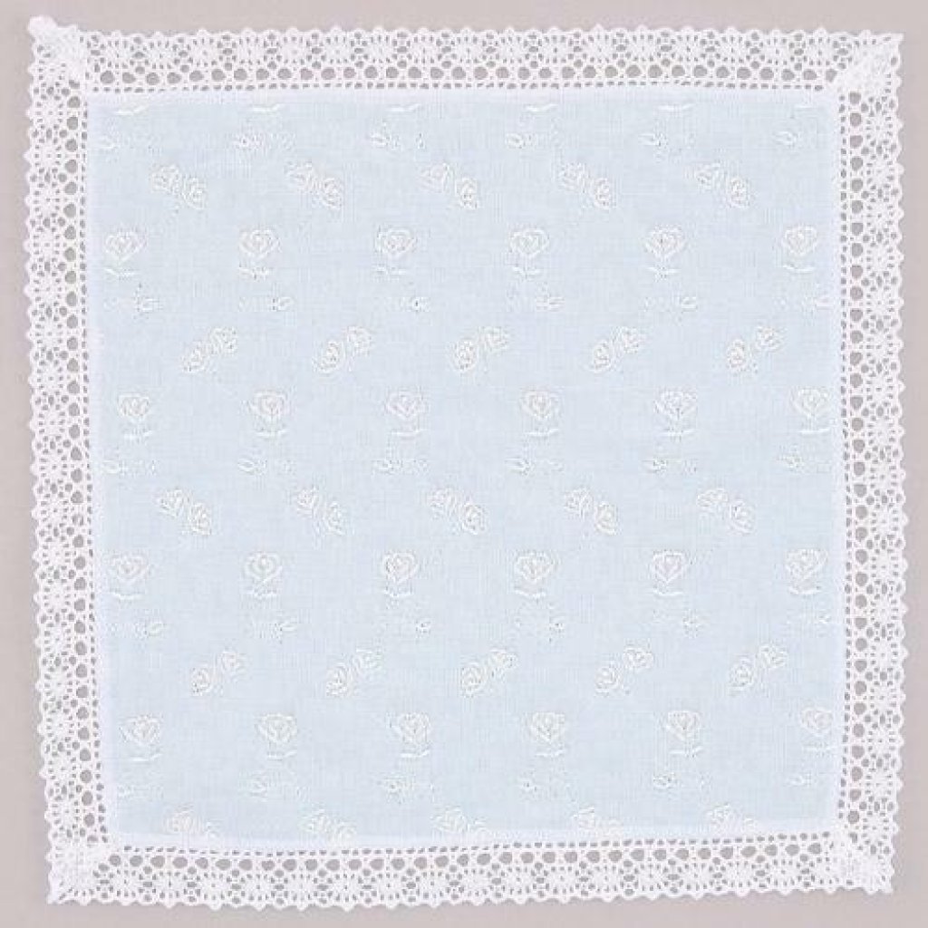 日式刺繍蕾絲方巾 25x25 (藍色) (日本製)