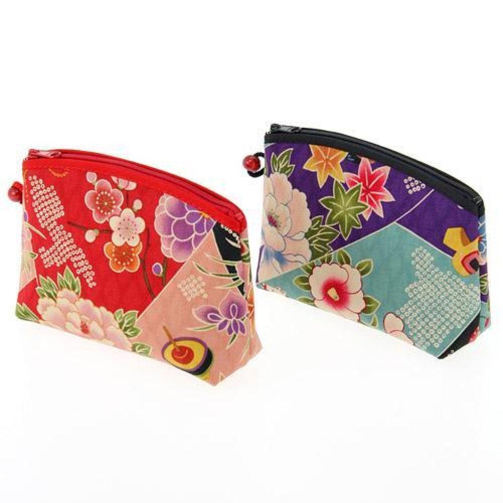 日式和服花卉木球拉鏈袋 (混色) (日本製)