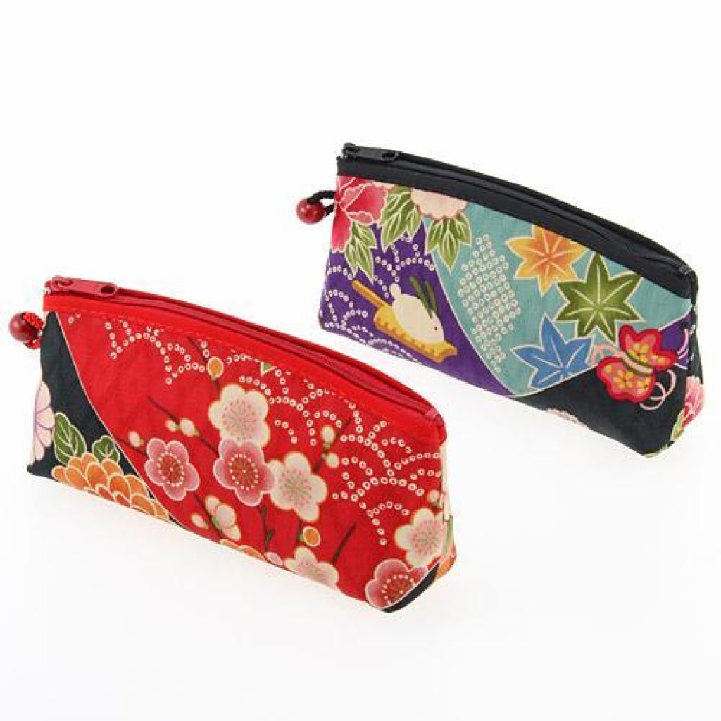 日式和服花卉木球長型拉鏈袋 (混色) (日本製)