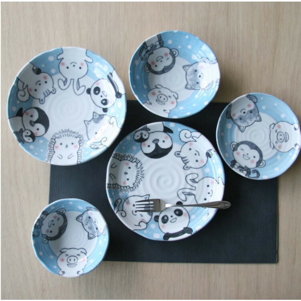日本美濃燒TONOTOKI有古窯動物瓦碟(藍色)22CM (日本製)