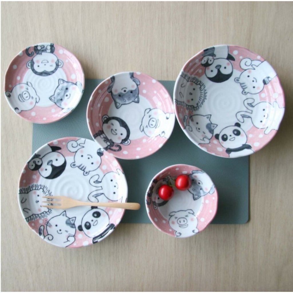 日本美濃燒TONOTOKI有古窯動物瓦碟(粉紅)22CM (日本製)