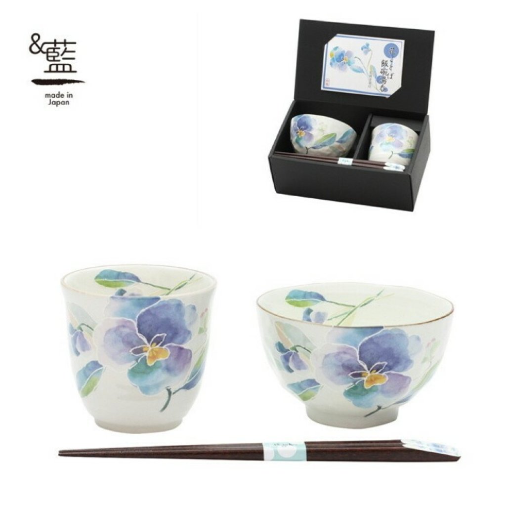 日本美濃燒藍靛花子瓦碗瓦杯套裝 (藍) (日本製)