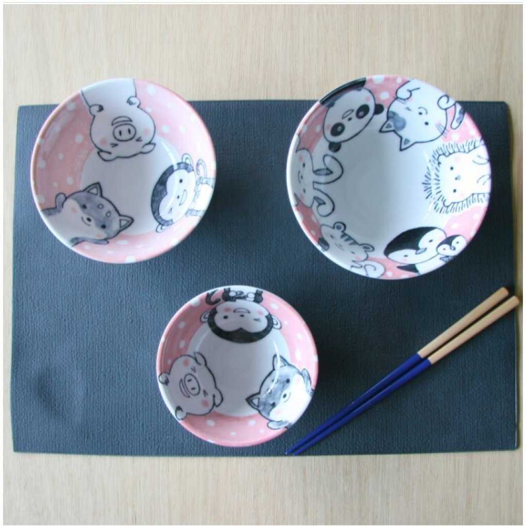 日本美濃燒TONOTOKI有古窯動物瓦碗(粉紅)15CM (日本製)