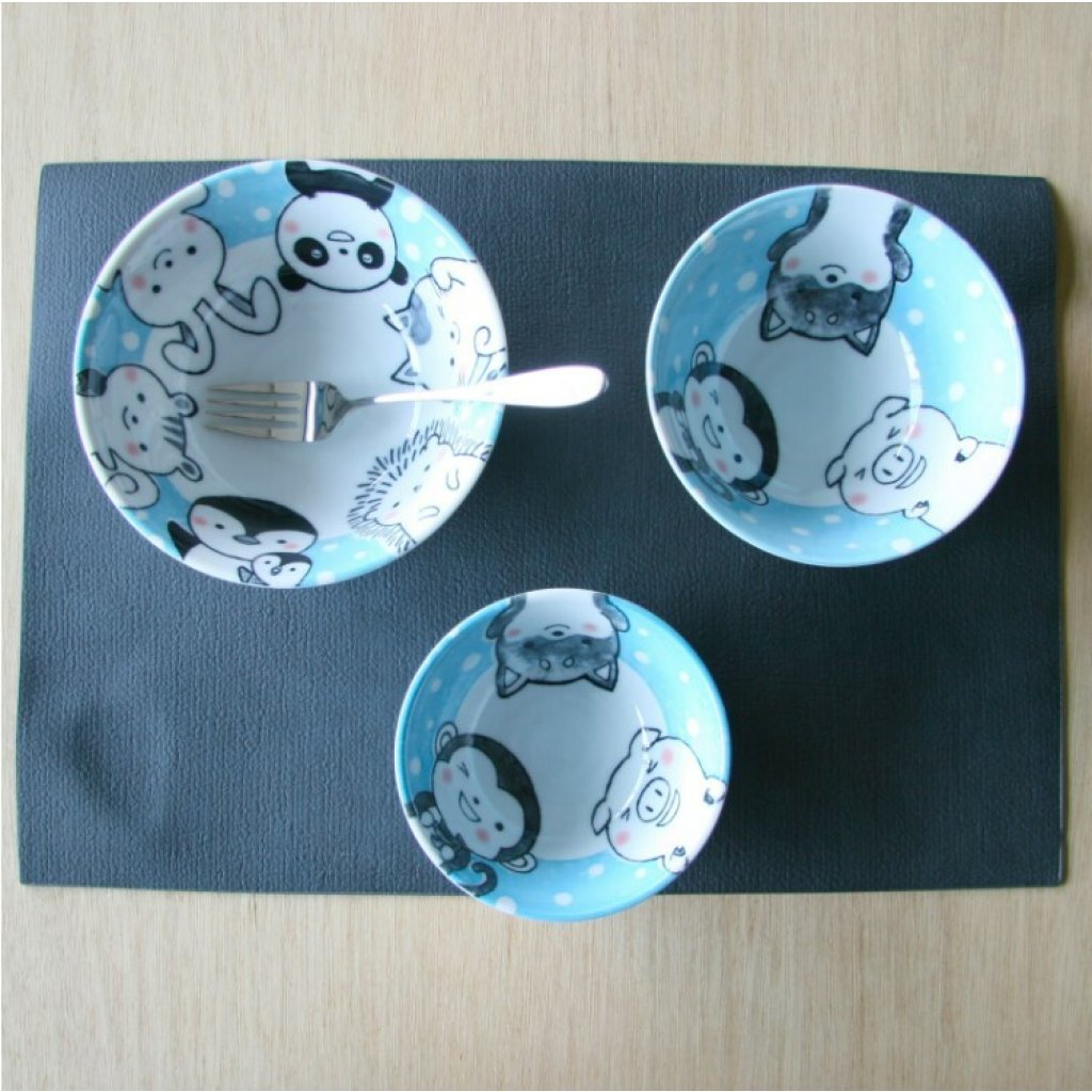 日本美濃燒TONOTOKI有古窯動物瓦碗(藍色)15CM (日本製)