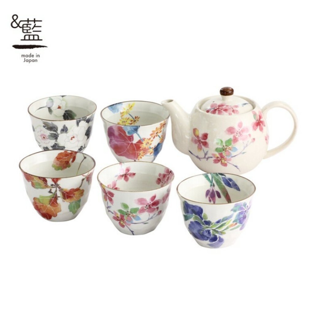 日本美濃燒茶壺套裝(四季花)(5件套) (日本製)