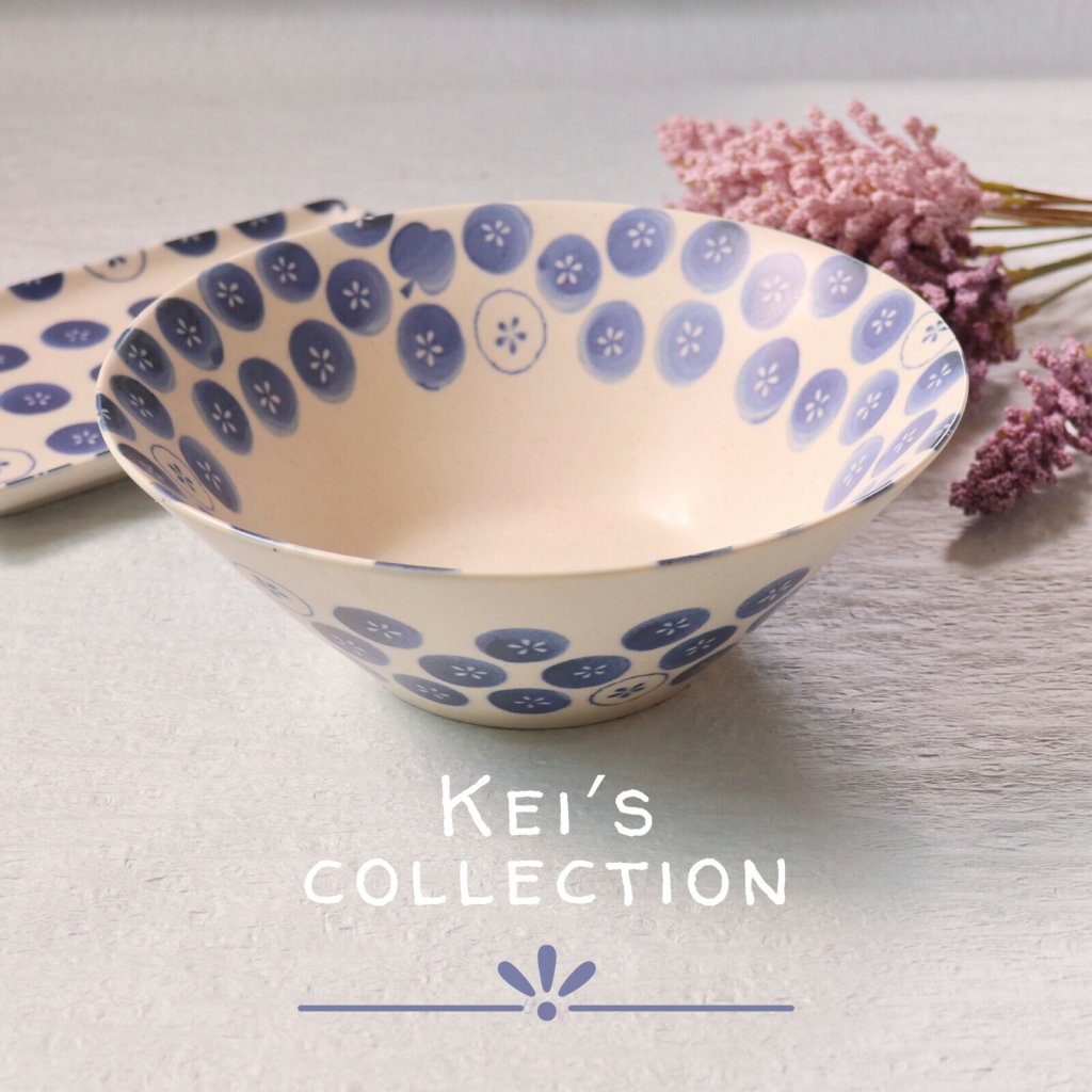 日本美濃燒蘋果瓦碗(藍) 20CM (日本製)