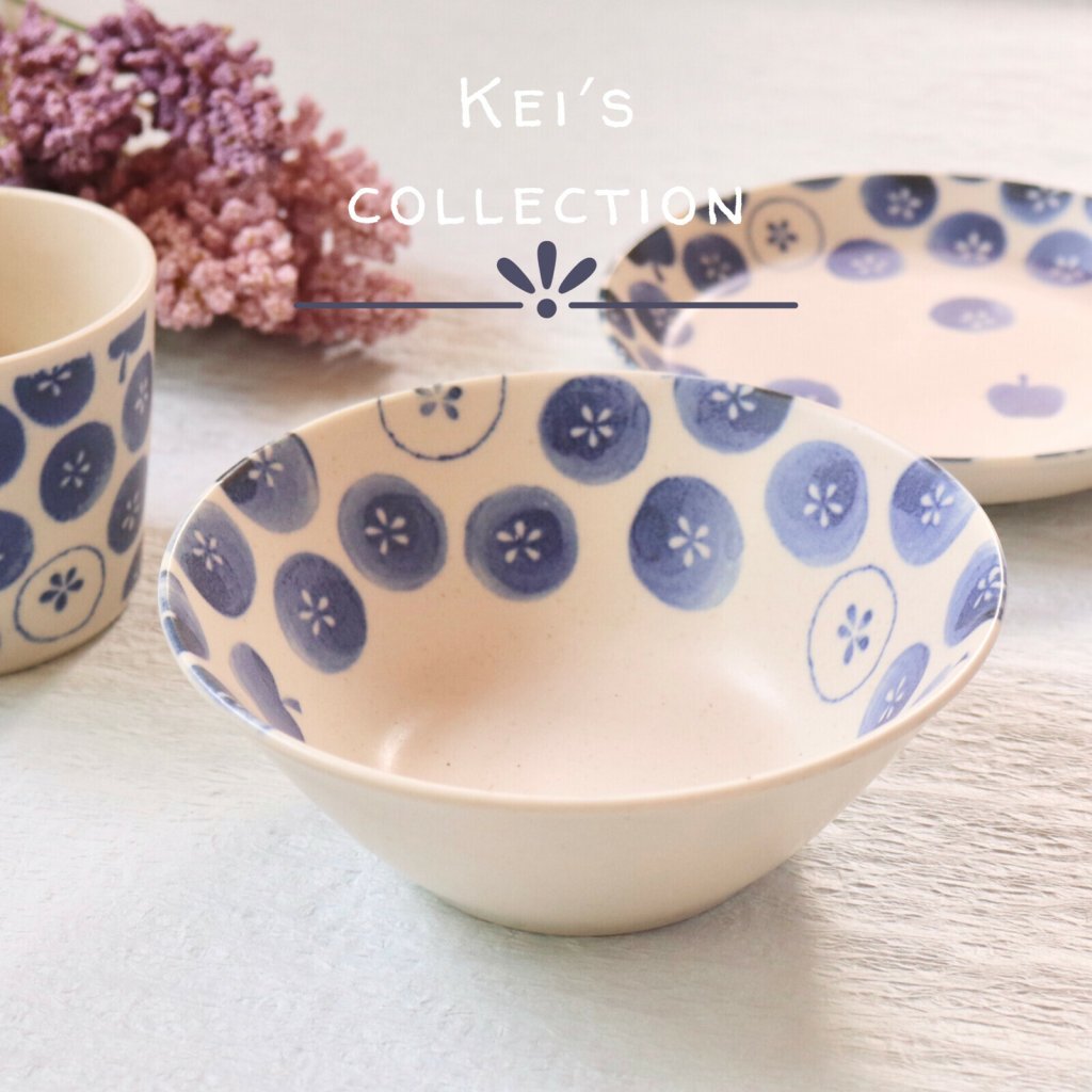 日本美濃燒蘋果瓦碗(藍) 13.5CM (日本製)