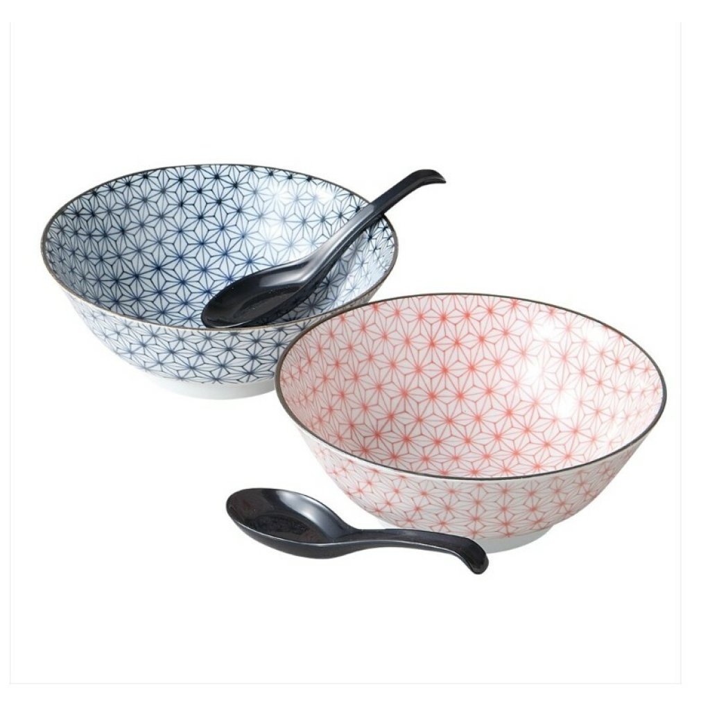日本美濃燒陶瓷麻の葉麺鉢瓦碗連匙羹套裝 (日本製)