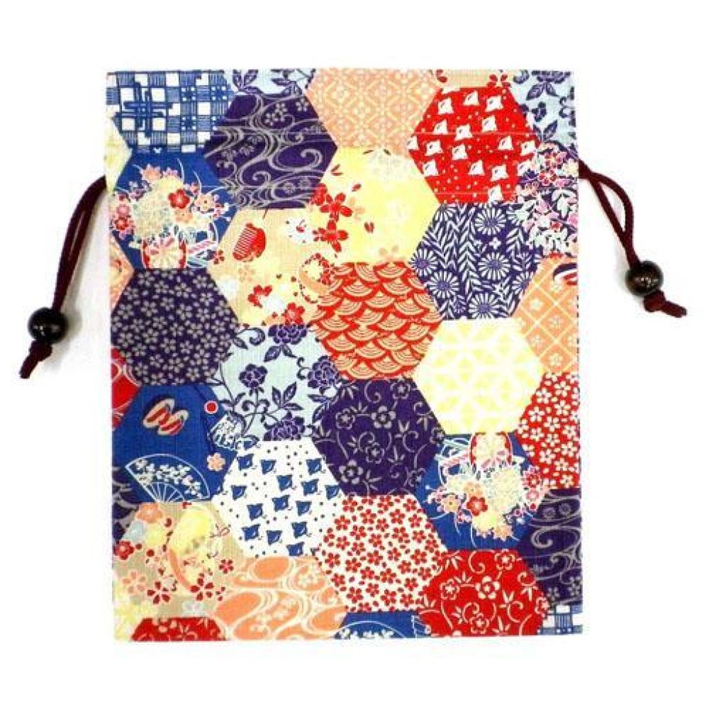 日式花卉圖案索繩袋 (紅色) (日本製)