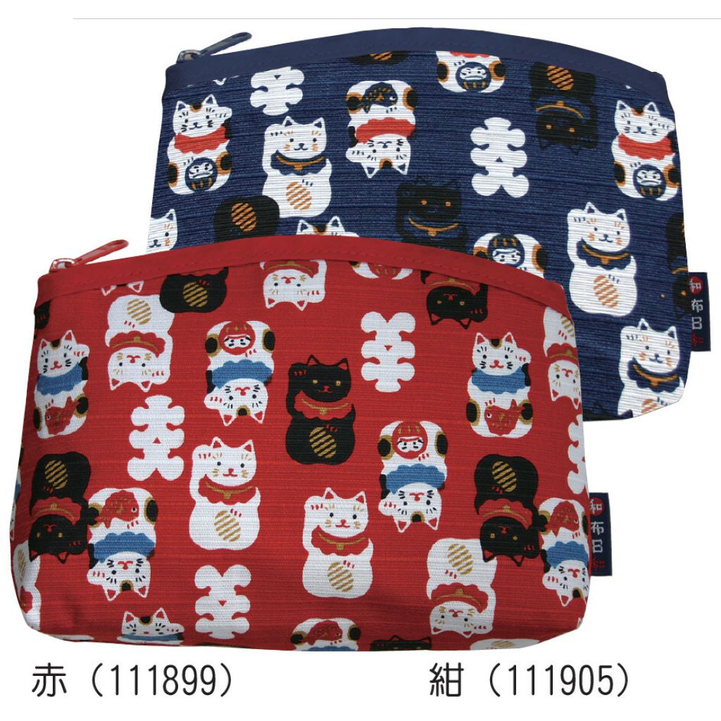 日本和布日和招財貓拉鏈袋(藍) (日本製)