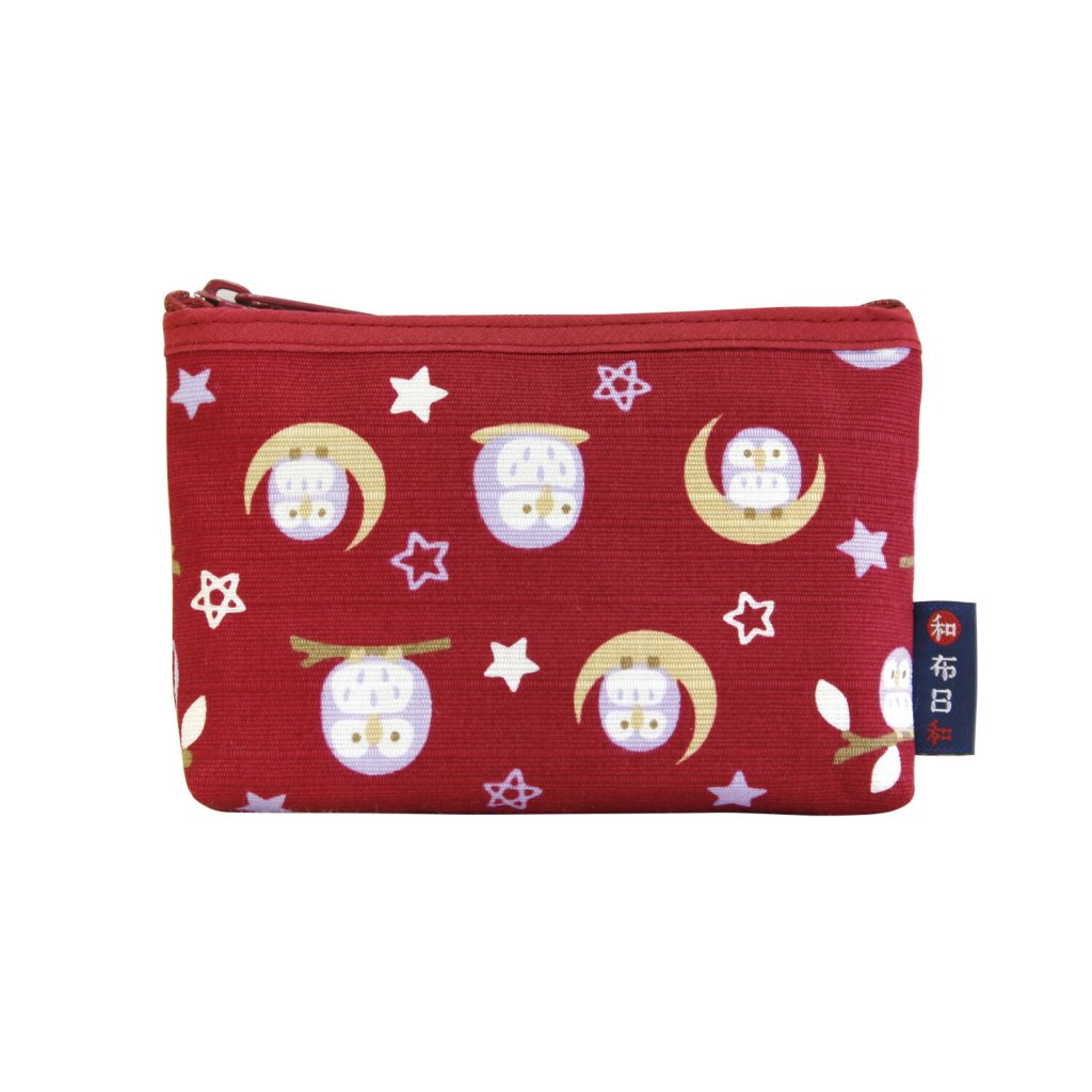 日本和布日和貓頭鷹拉鏈袋(小)(紅) (日本製)