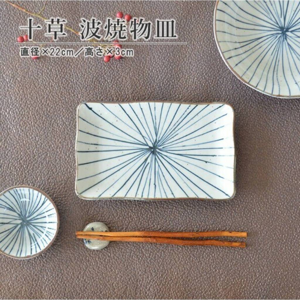 日本美濃燒十草長瓦碟 22CM (日本製)