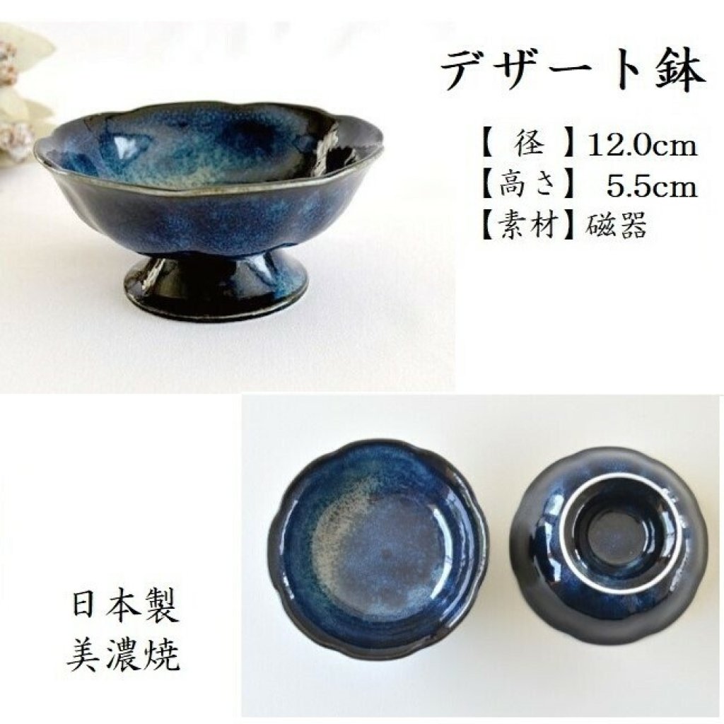 日本美濃燒窯変紺藍染高瓦碗 12CM (日本製)