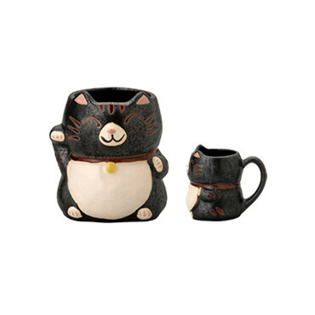 日本陶瓷招財貓瓦杯(黑色) (日本製)
