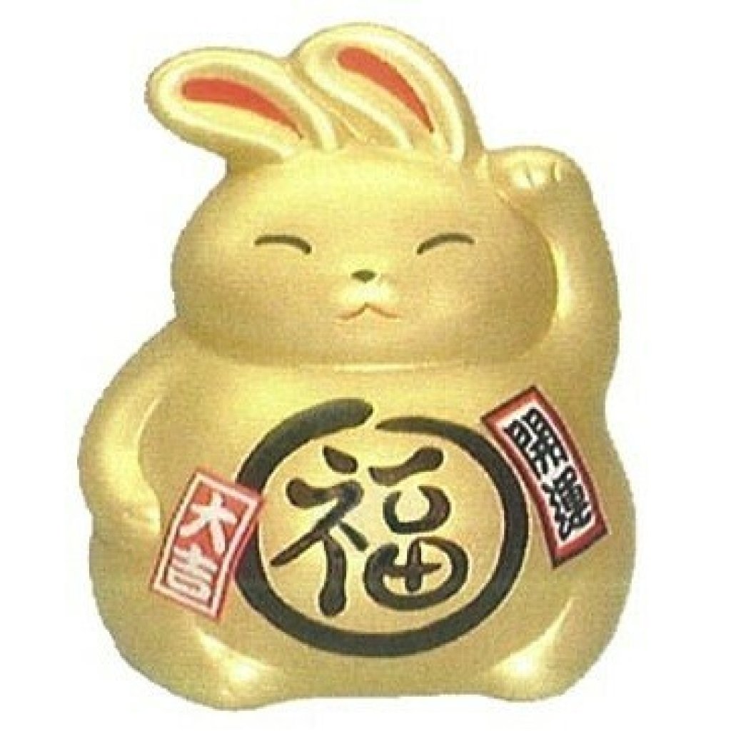 日式萬古燒陶瓷開運儲金箱 (金白兔) (日本製)
