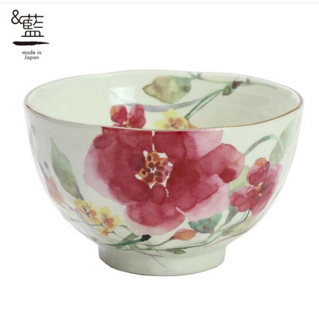 日本美濃燒花水彩瓦碗(紅)11CM (日本製)