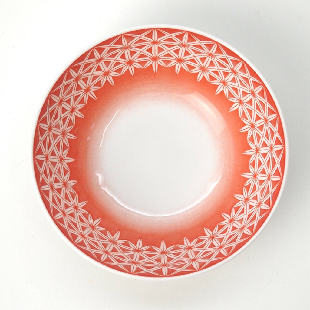 日本美濃燒陶切子矢来瓦碗(紅)17CM (日本製)