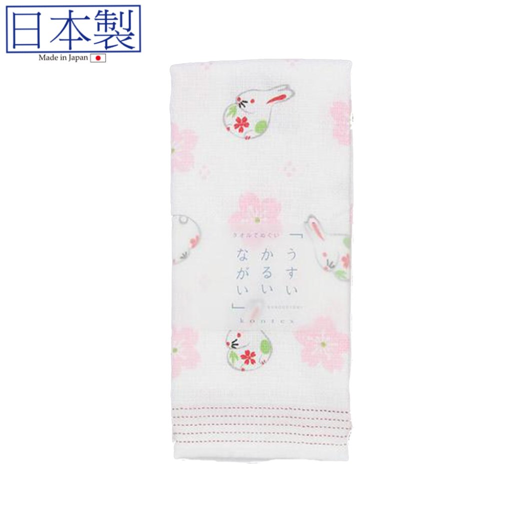 日式紗巾 33x100 (櫻花白兔) (日本製)