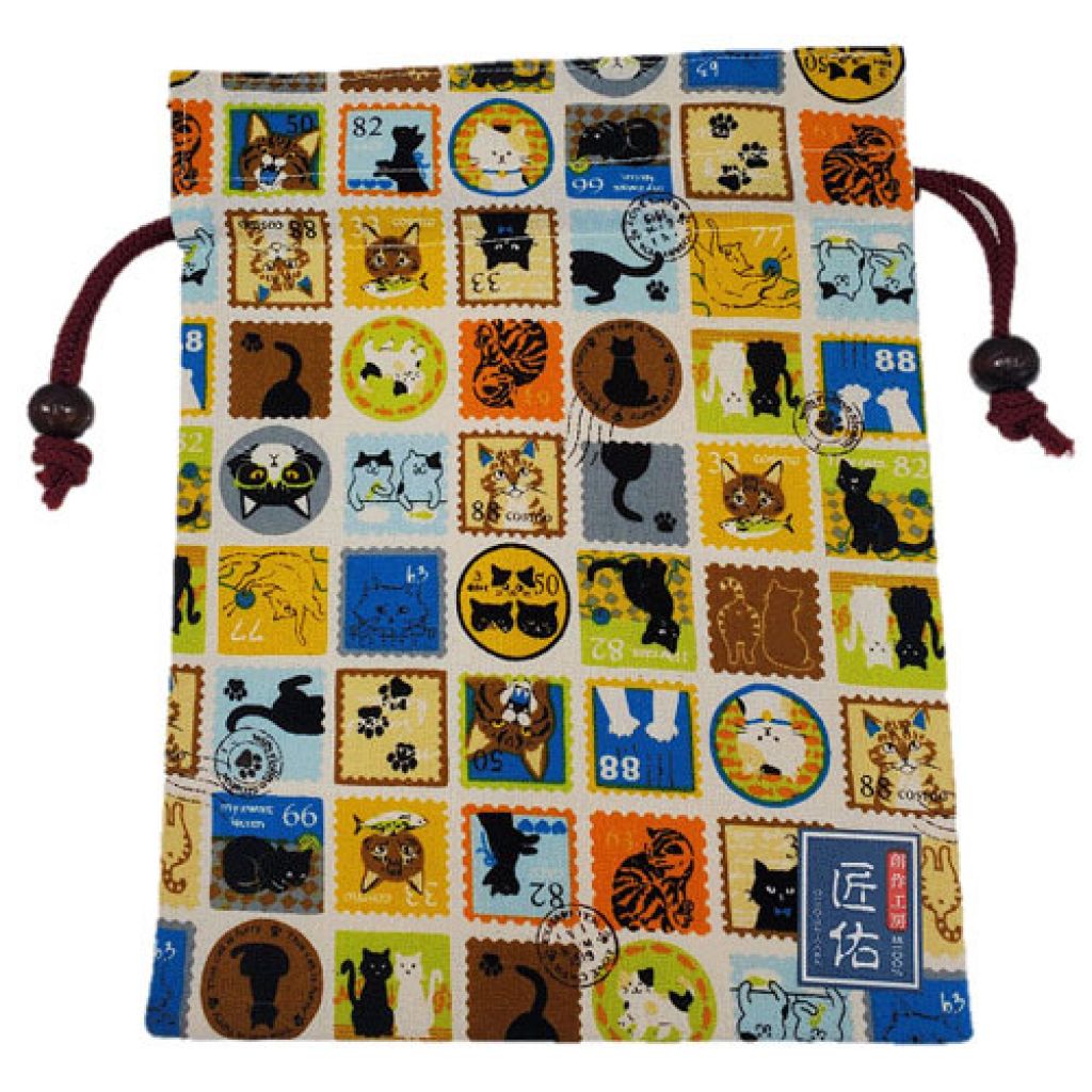 日式平巾着貓切手索繩袋(黃) (日本製)