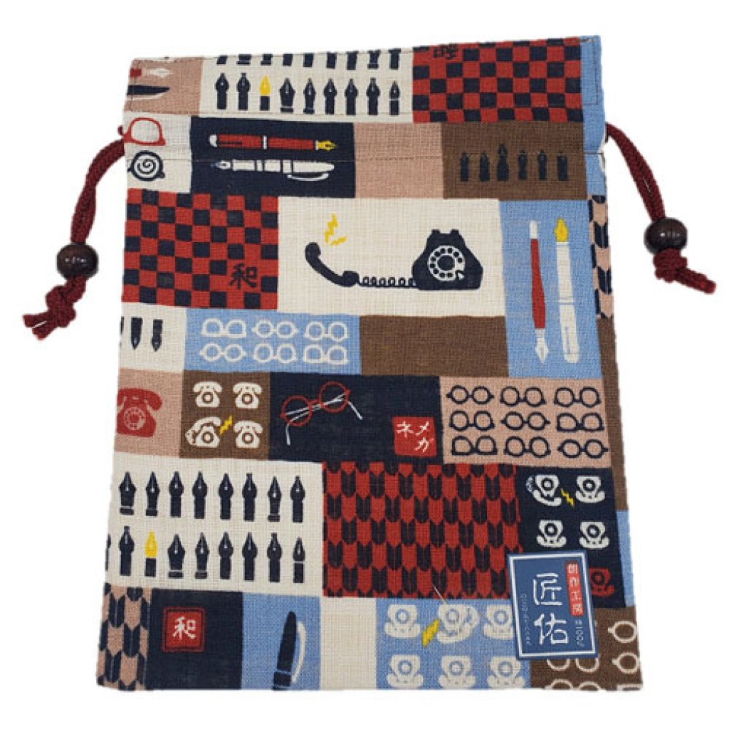 日式平巾着拼布索繩袋(紅) (日本製)