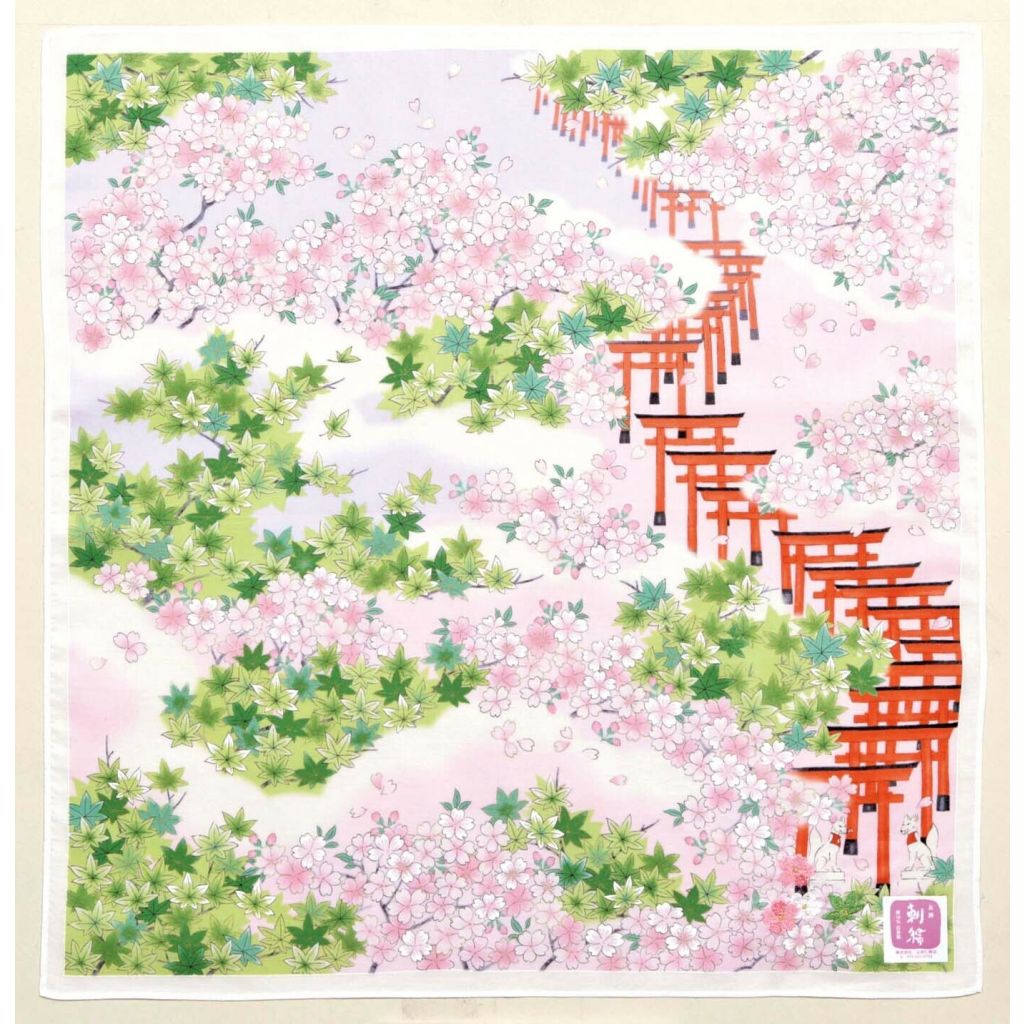 日本友禪刺繍伏見稲荷紗布方巾 (粉紅) 45x45 (日本製)