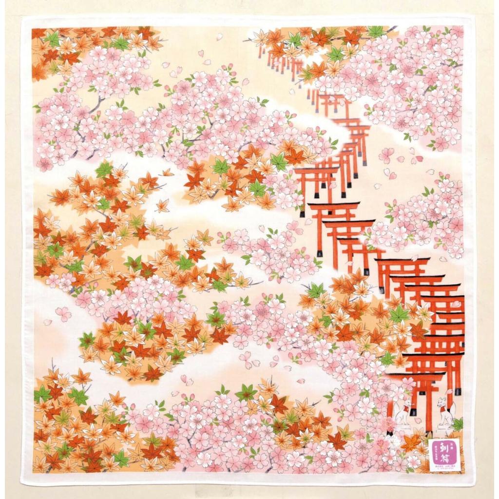 日本友禪刺繍伏見稲荷紗布方巾 (粉橙) 45x45 (日本製)