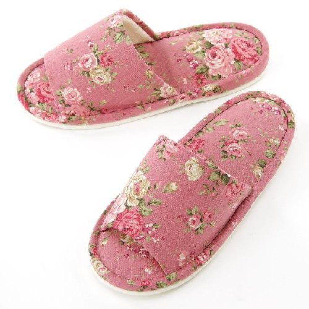 日式玫瑰花紋居家拖鞋 (粉紅) (日本製)
