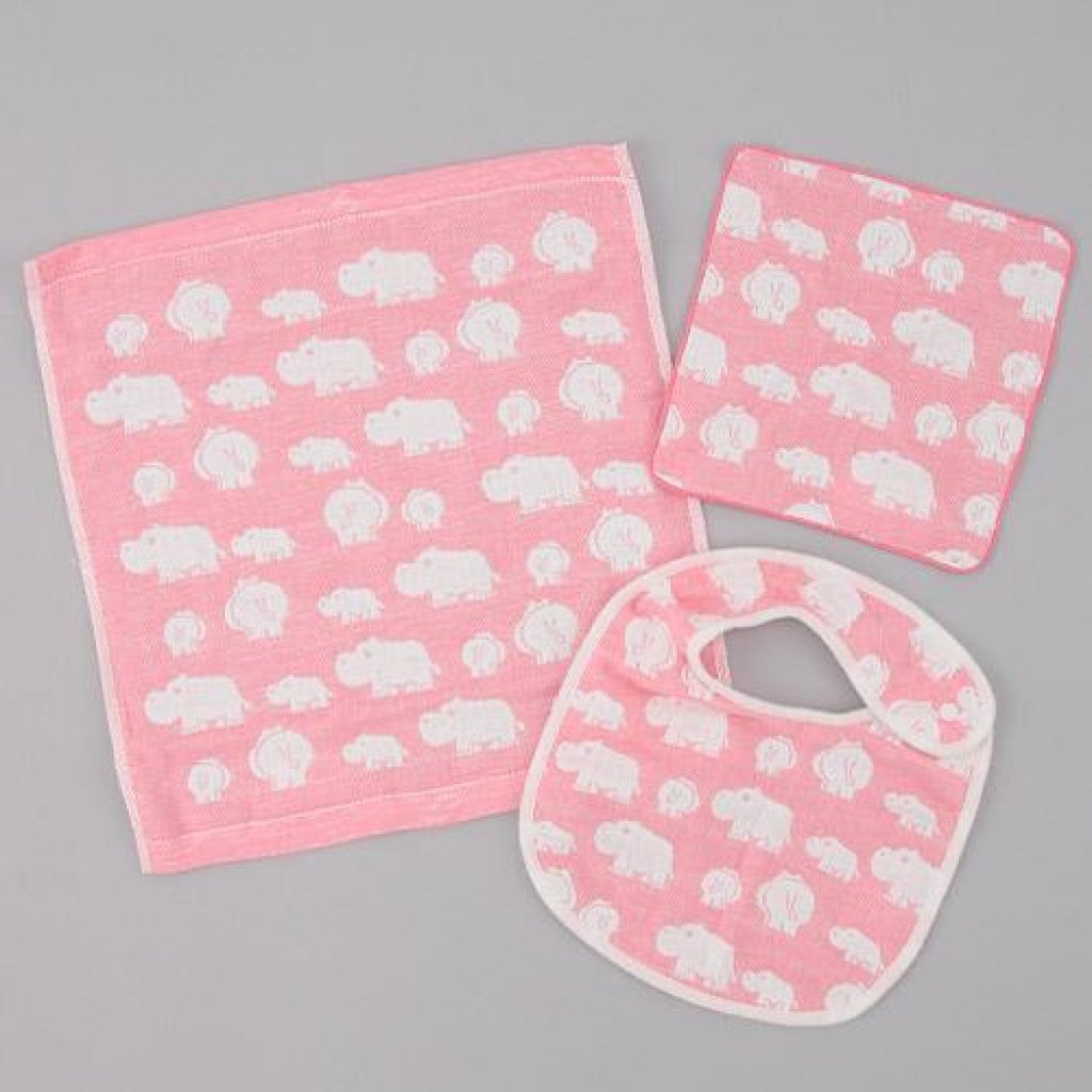 日本動物造型嬰兒毛巾連口水肩禮盒套裝 (粉紅) (日本製)