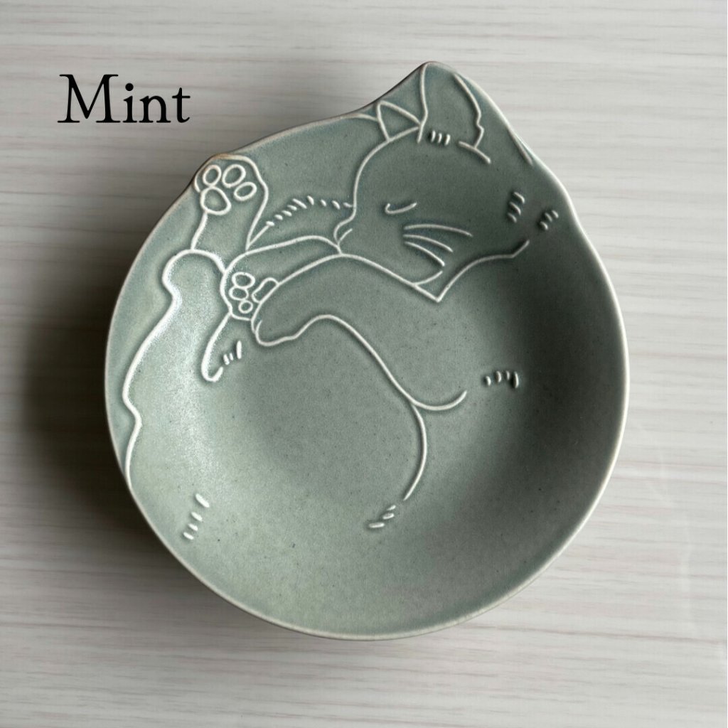 日本美濃燒MIAU睡貓貓瓦碟16CM (綠) (日本製)