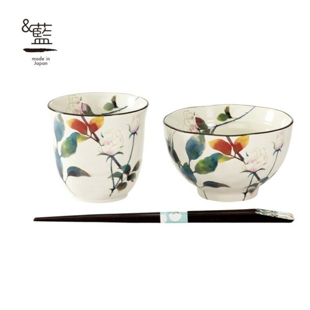 日本美濃燒ばら雅瓦杯瓦碗筷子禮盒套裝 (日本製)