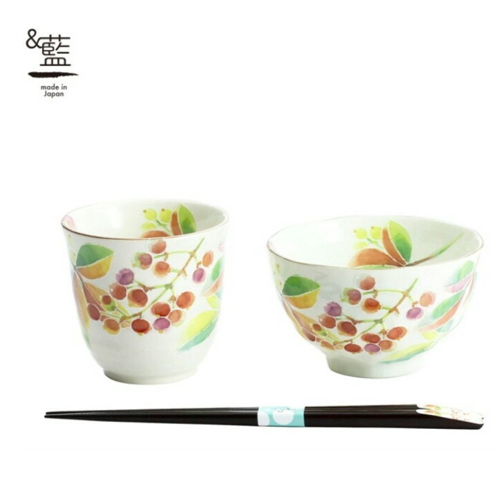 日本美濃燒和藍花かおり瓦杯瓦碗筷子禮盒套裝 (日本製)