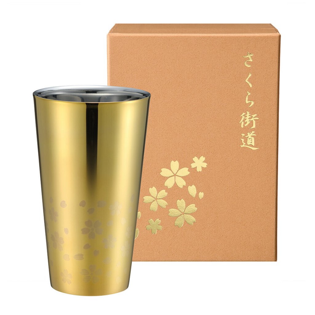 日本TSUBAMEさくら街道櫻花高級不銹鋼杯(金) (日本製)