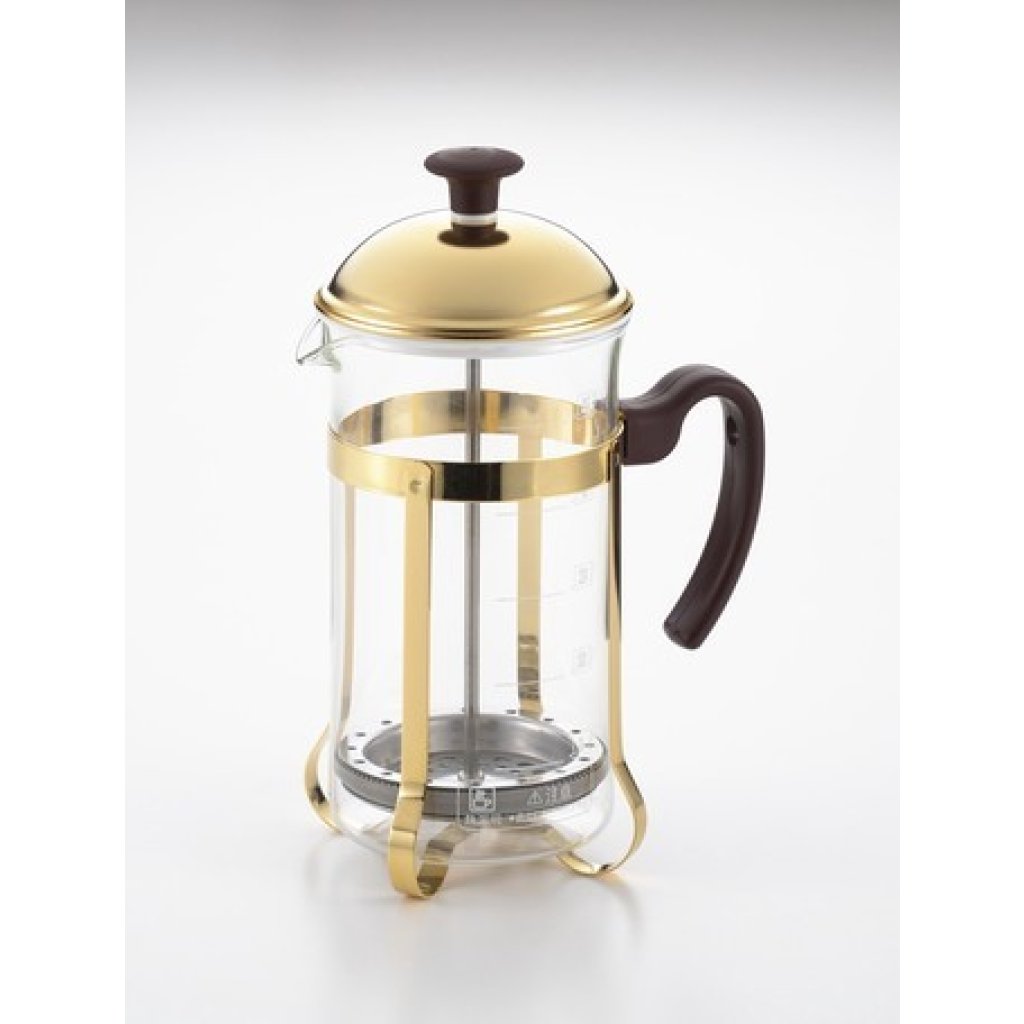 日本吉川耐熱玻璃不銹鋼壓力式茶壺 (金色) (日本製)