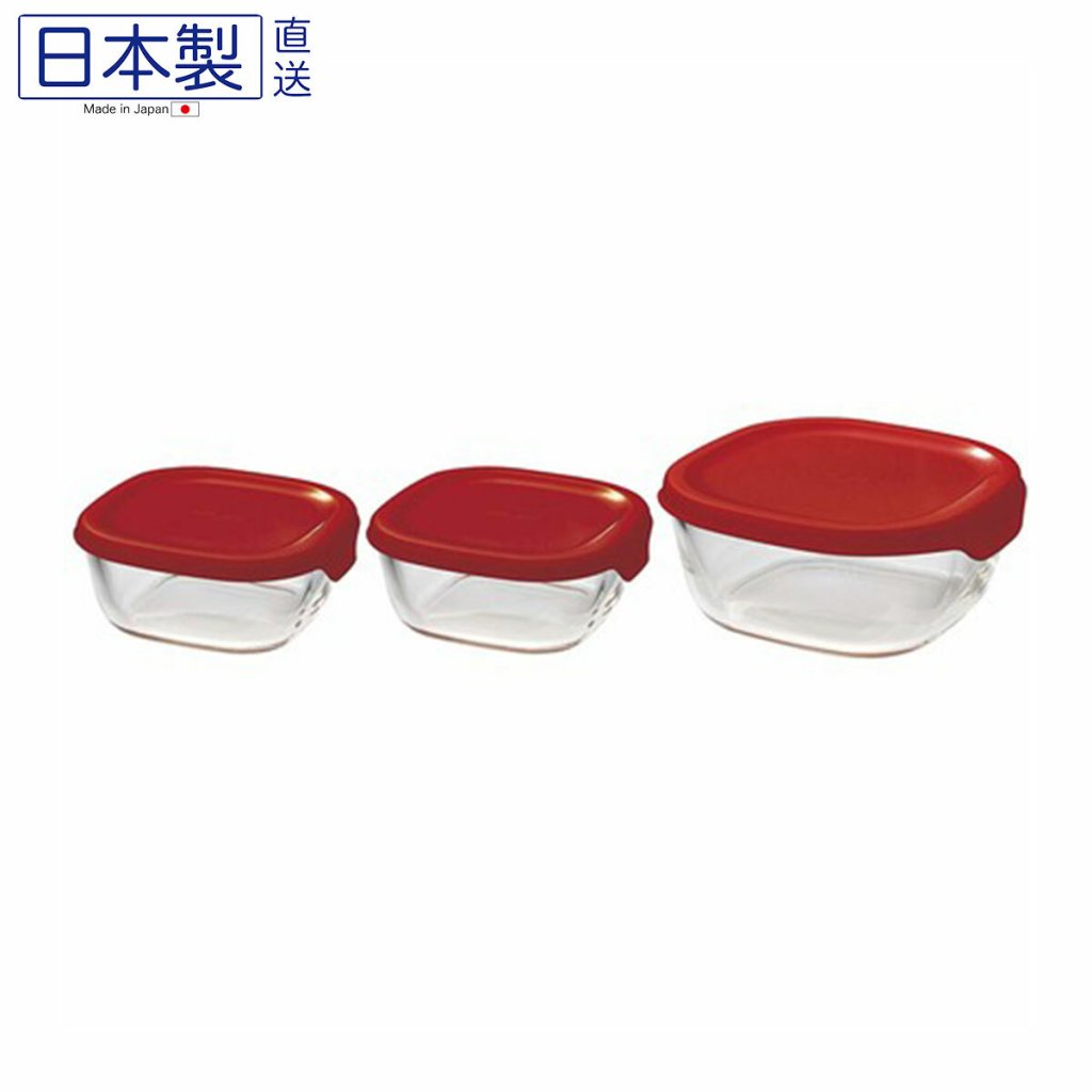 日本HARIO耐熱玻璃方形保鮮盒 (紅色) (3件裝) (日本製)