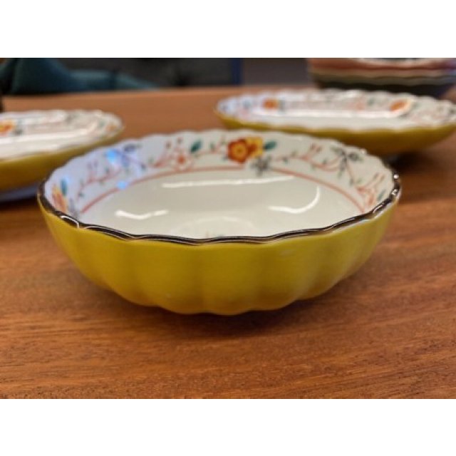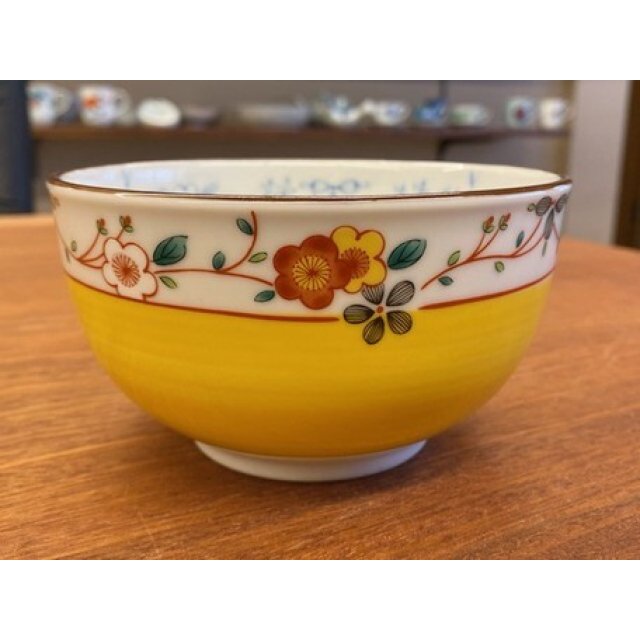 日式陶瓷黄彩梅小花深瓦碗 13CM (日本製)