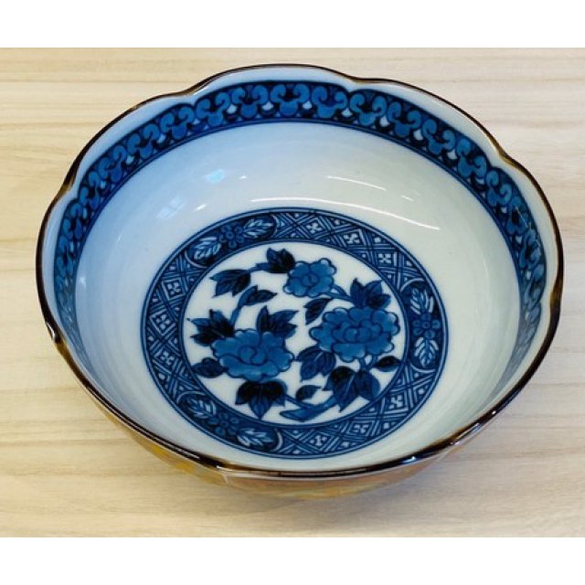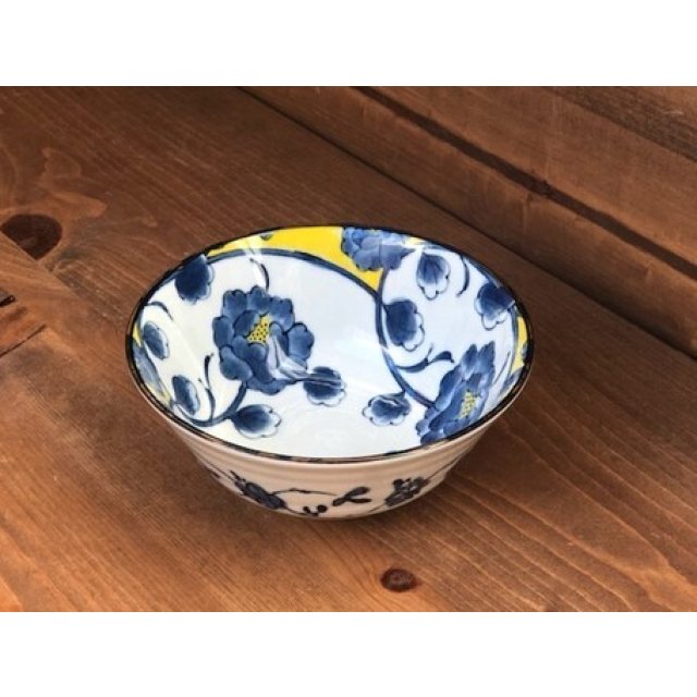 日式陶瓷黄彩牡丹瓦碗 15CM (日本製)