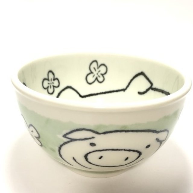 日式陶瓷花草瓦碗(豬仔) 13CM (日本製)