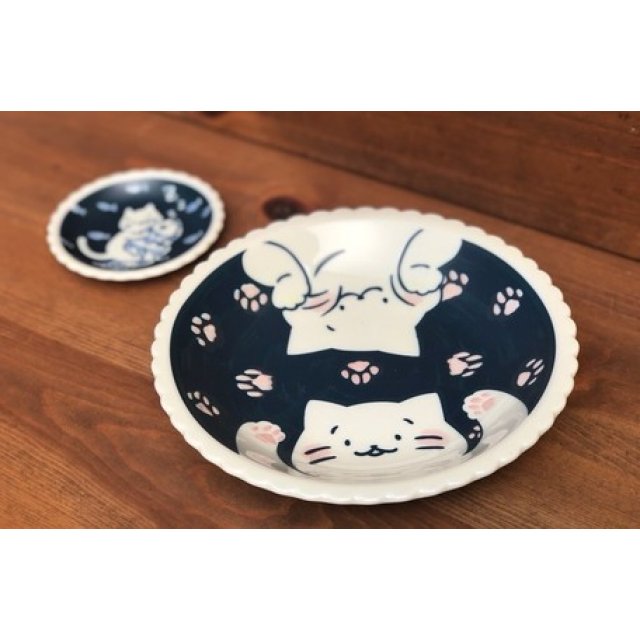 日式陶瓷幸福白貓瓦碟 (肥面) 21CM (日本製)