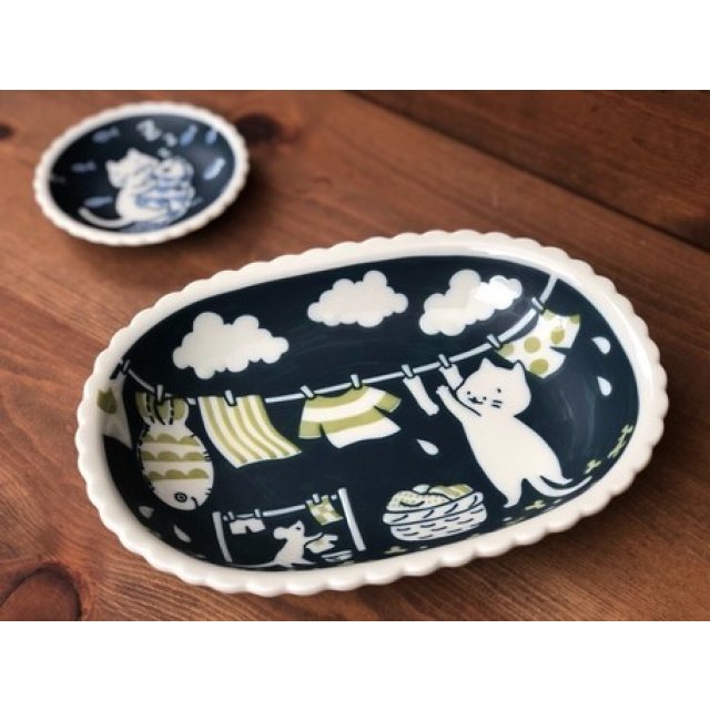 日式陶瓷幸福白貓瓦碟 (晒衫) 22CM (日本製)