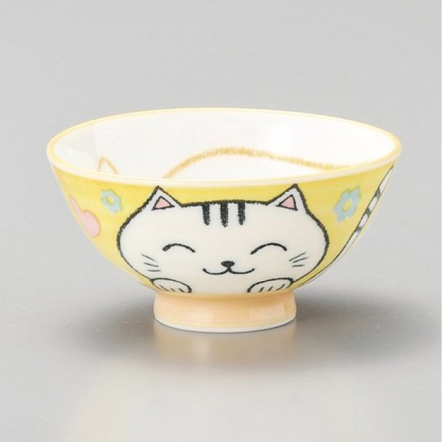 日式陶瓷花花貓仔瓦碗(黃色) 10CM (日本製)