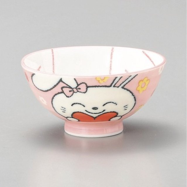 日式陶瓷心型兔仔瓦碗(粉紅) 10CM (日本製)
