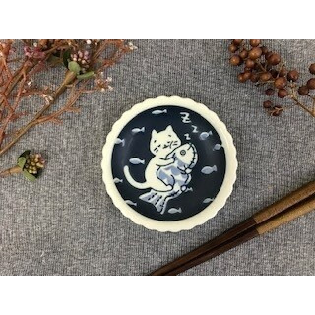 日式陶瓷幸福白貓瓦碟 (潛水) 10CM (日本製)