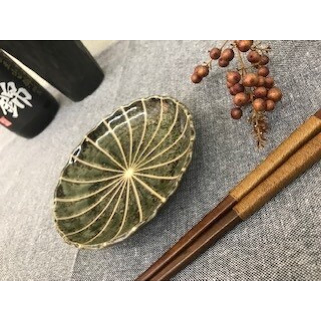 日式陶瓷十草菊花灣碟 (綠色) 13CM (日本製)