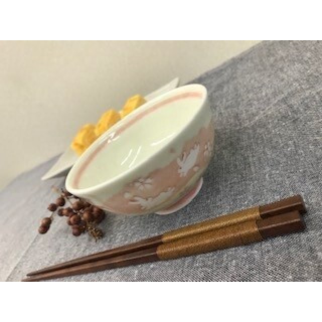 日式陶瓷兔仔瓦碗(粉紅) 10CM (日本製)