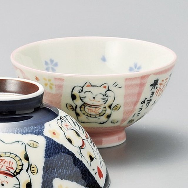 日式陶瓷招財貓瓦碗(粉紅) 11CM (日本製)