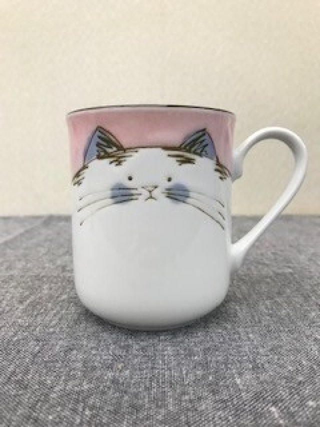 日式陶瓷貓貓瓦杯(粉紅) 10CM (日本製)