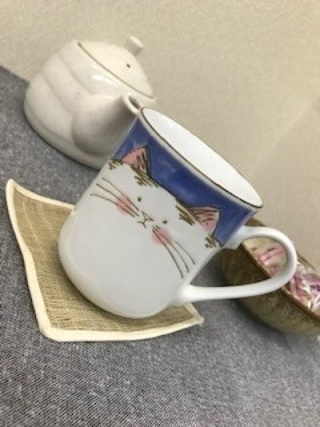 日式陶瓷貓貓瓦杯(粉藍) 10CM (日本製)