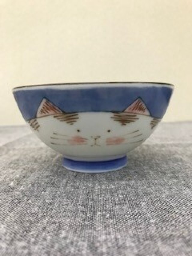 日式陶瓷貓貓瓦碗(粉藍) 11CM (日本製)