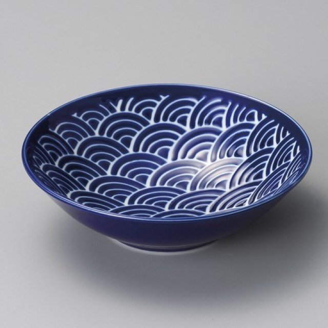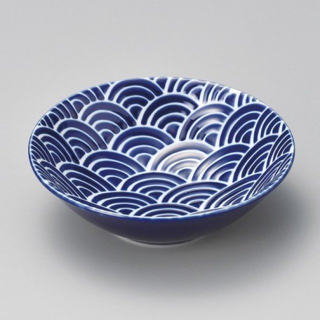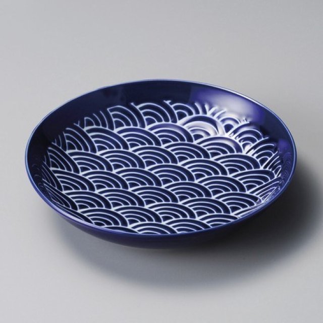 日式陶瓷波浪瓦碟 (藍色) 19CM (日本製)