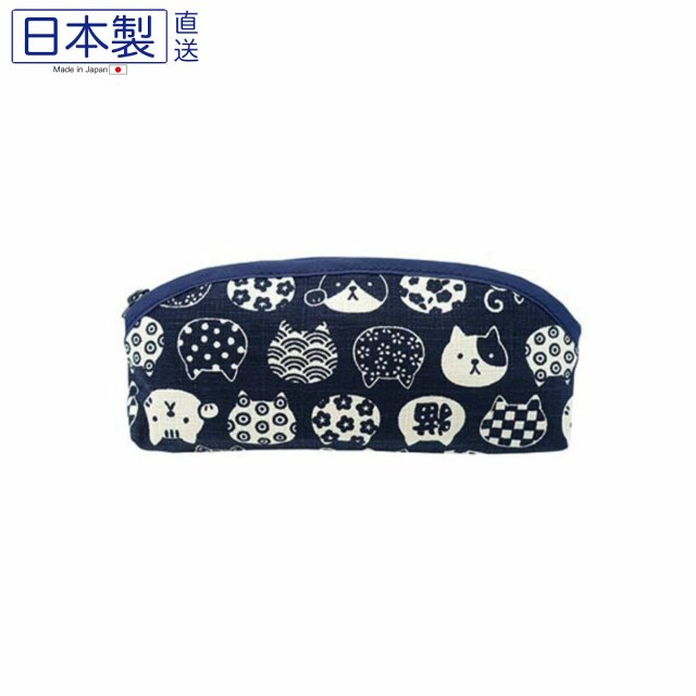 日式可愛貓貓長型拉鏈袋 (貓頭) (藍色) (日本製)